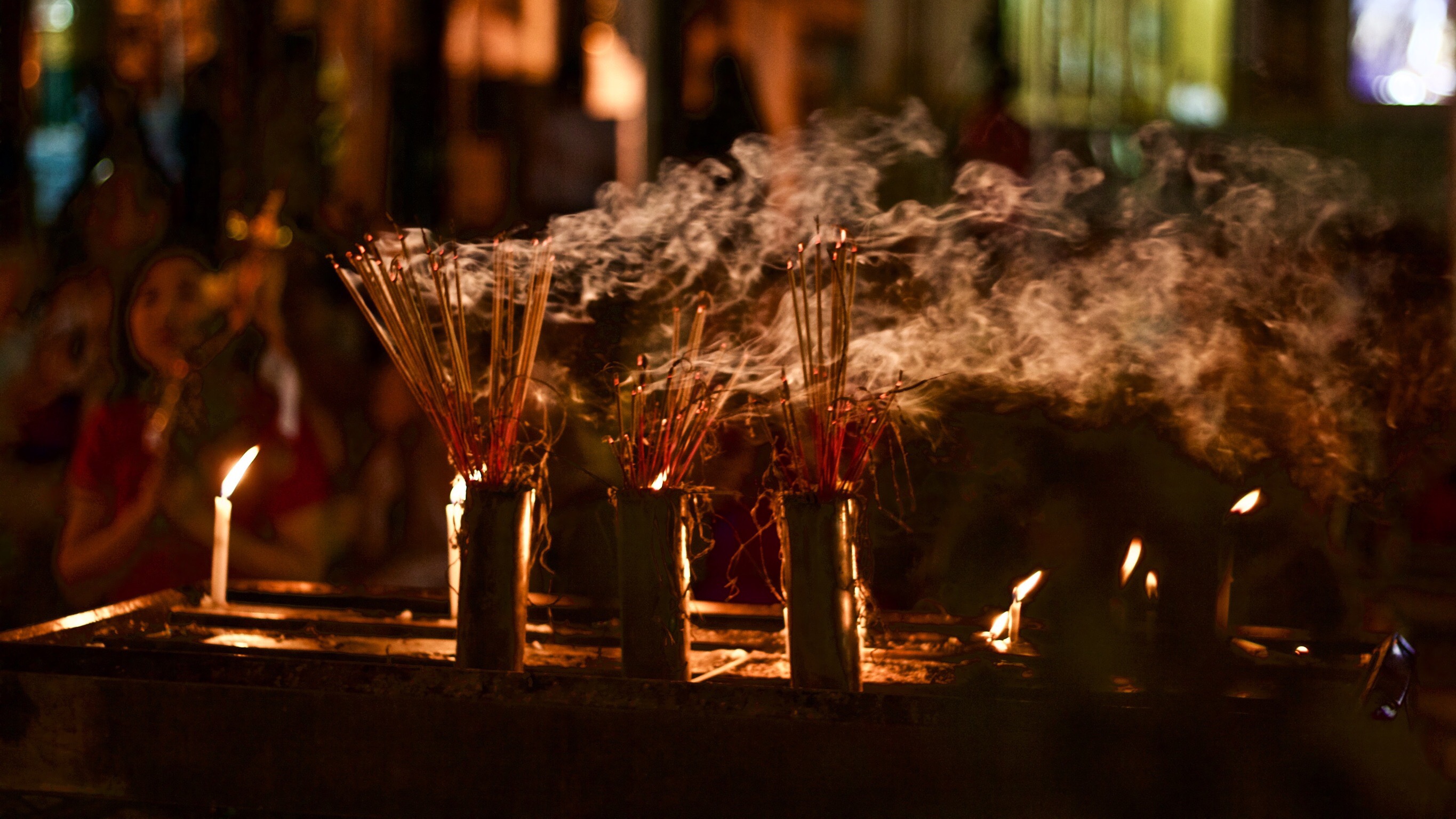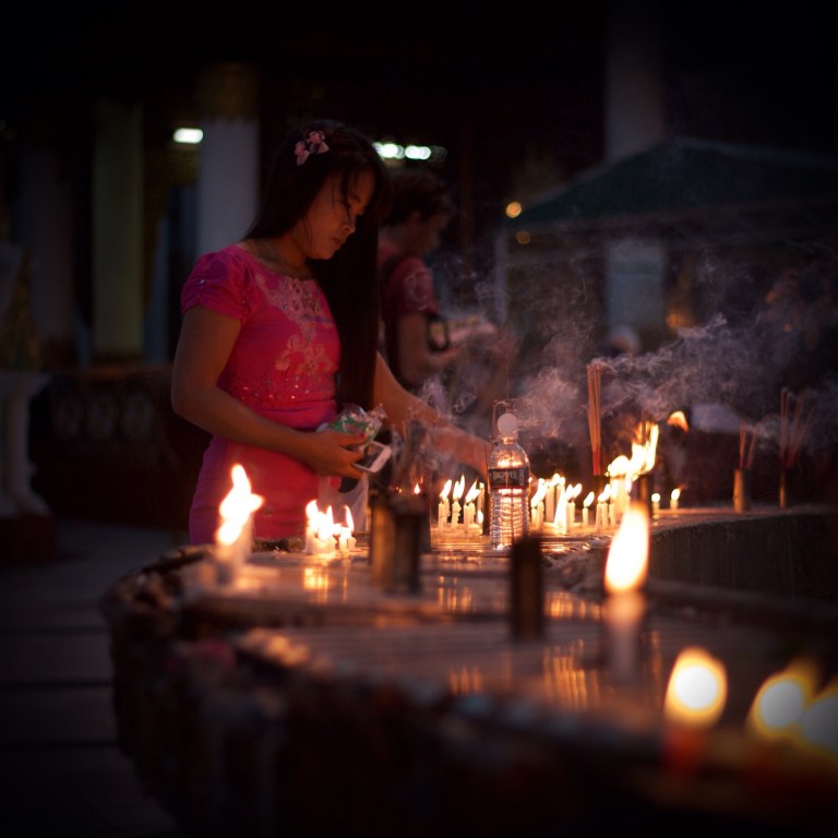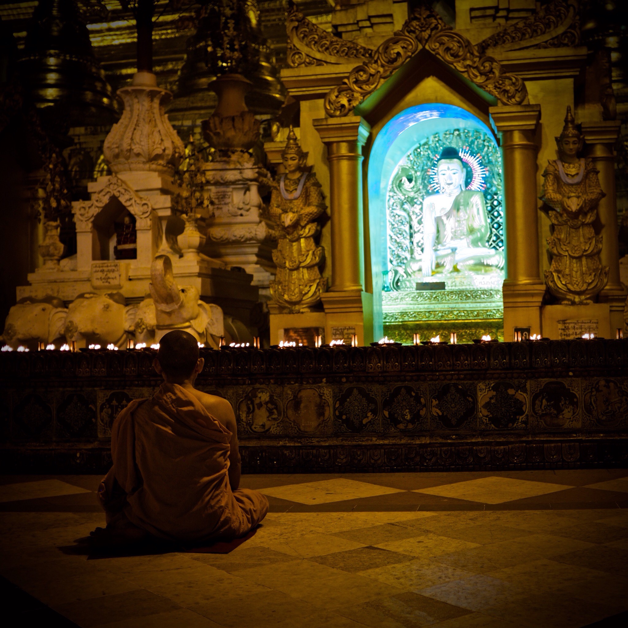 Eppure, l’incanto vero, è stato abbassare lo sguardo, verso chi ci stava accanto. Ci siamo seduti a terra per ammirare il via vai di persone, intente a ripetere i loro mantra. Le candele che si accendevano, una dopo l’altra, insieme all’incenso, formavano un cordone infuocato, che ruotava tutto attorno alla struttura e, sebbene non fossimo arrivati li per pregare, essere travolti da tutto questo è stata un’esperienza senza tempo.