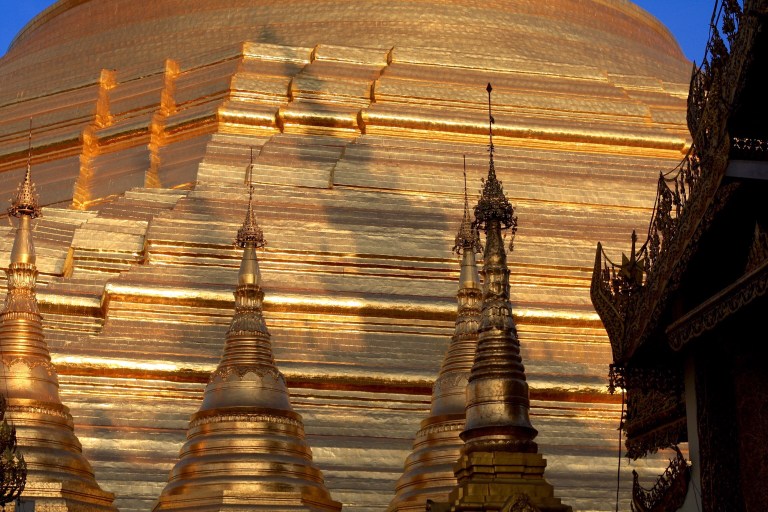 Si tratta dell’attrazione principale di Yangon: un monumento conico altissimo, rivestito d’oro attorno al quale si ergono tante piccole strutture simili, a formare un complesso maestoso. La nostra visita è durata più del previsto, facendoci perdere tra le sfaccettature dorate, che il sole irradiava andando via, e poi nella luce abbagliante della pagoda che brillava nell’oscurità della notte.
